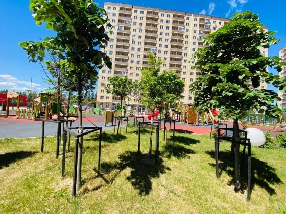 -Продаётся уютная квартира в новом комплексе в спальном районе города, современная планировка с большими кухнями , красивая аллея ландшафтным дизайнером,