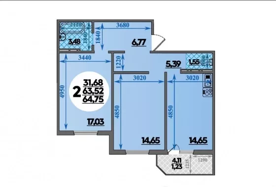 Продается 2-х комн. новостройка, 56 кв.м., 10/16 эт