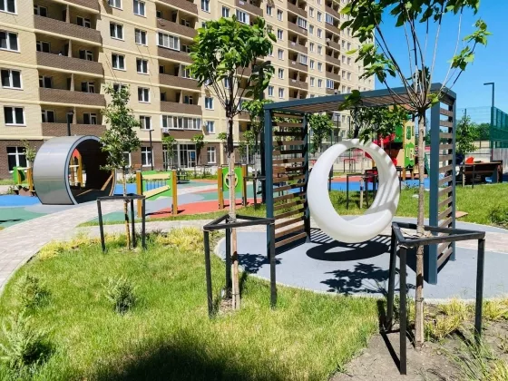 -Продаётся уютная квартира в новом комплексе в спальном районе города, современная планировка с большими кухнями , красивая аллея ландшафтным дизайнером,