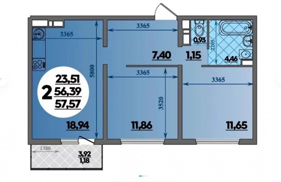 | Площадь, кв.м. | 58 |