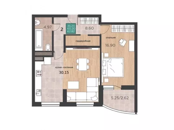 Продается 2-х комн. новостройка, 62 кв.м., 7/16 эт