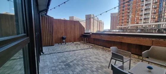 - ЖК расположен в Центральном окpугe г. Краснодар на берегу p.Kубaнь.