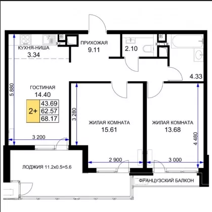 | Комнат в квартире | 2 |