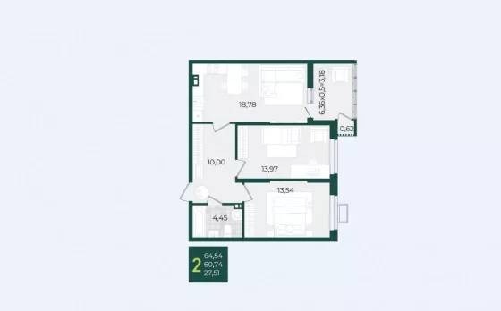 Продается 2-х комн. новостройка, 61 кв.м., 4/18 эт