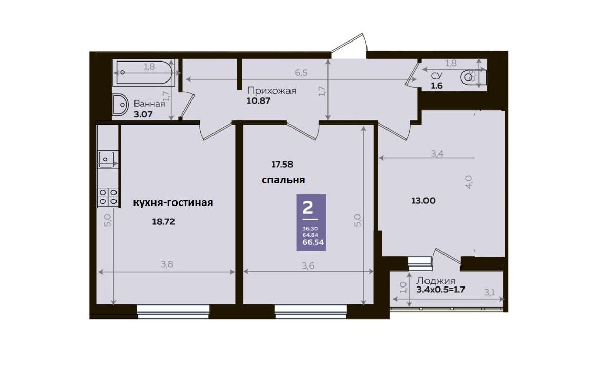 Продается 2-х комн. новостройка, 66 кв.м., 5/24 эт