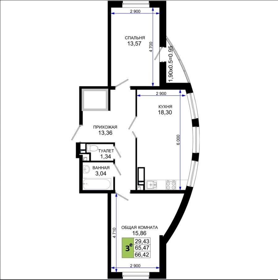 Продается 2-х комн. новостройка, 66 кв.м., 10/18 эт