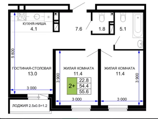 Продается 2-х комн. новостройка, 58 кв.м., 11/16 эт