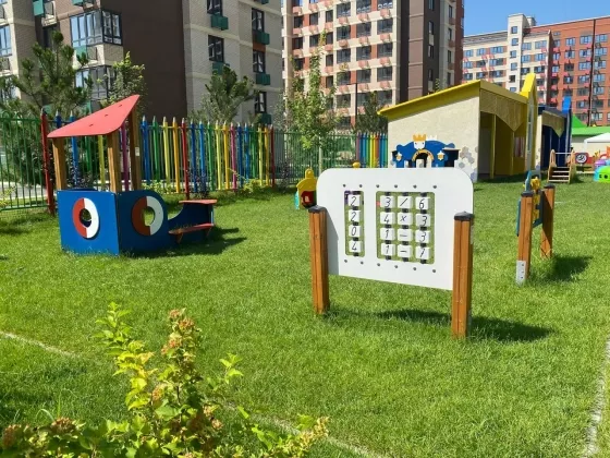 колясочная зона и помывочная для лап. И туалет на первом этаже для жителе дома, так же есть площадка для собак. продуманный ландшафтный красочные детские площадки и, много зелени и свежего воздуха.