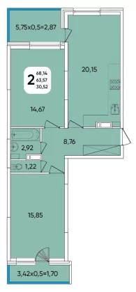 Продается 2-х комн. новостройка, 72 кв.м., 5/18 эт