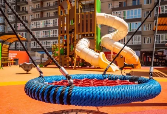 Перед домом 2 садика и 1 школа!!! Так же есть фитнес центр с открытым бассейном ,очень зелёная аллея. очень зелёный район и тихий район города