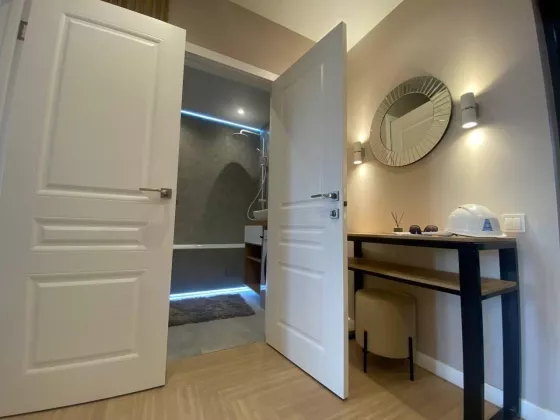 колясочная зона и помывочная для лап собачек ,и туалет на первом этаже для жителе дома, так же есть площадка для собак. продуманный ландшафтный красочные детские площадки и, много зелени и свежего воздуха.