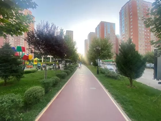 Вдоль дома огромная алея 1,5 километра и фонтаны