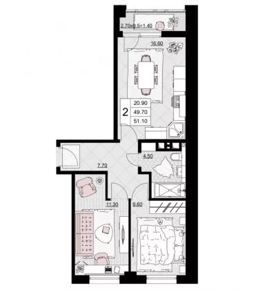 Продается 2-х комн. новостройка, 52.5 кв.м., 2/9 эт