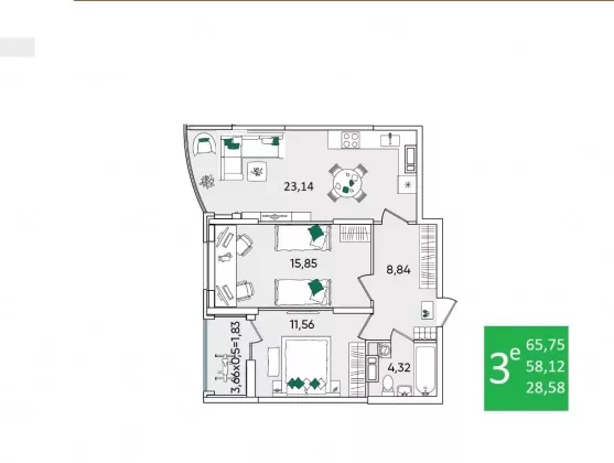| Площадь, кв.м. | 65 |