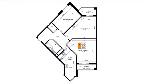 Продается 3-х комн. новостройка, 105 кв.м., 7/12 эт