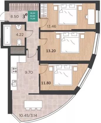 Продается 3-х комн. новостройка, 71 кв.м., 10/21 эт
