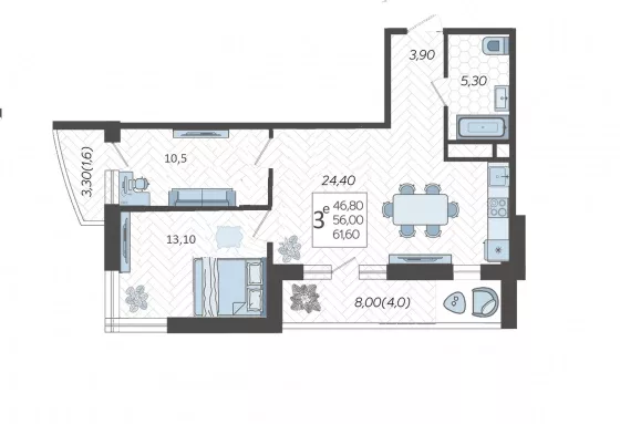 Продается 3-х комн. новостройка, 62 кв.м., 10/16 эт
