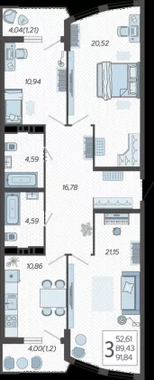 Продается 3-х комн. новостройка, 96 кв.м., 5/21 эт
