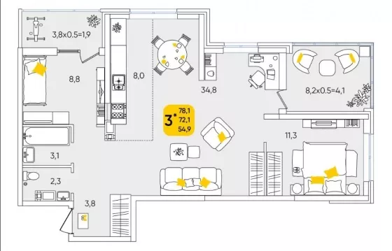 | Комнат в квартире | 3 |