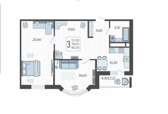 Продается 3-х комн. новостройка, 81 кв.м., 5/19 эт