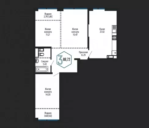 Продается 3-х комн. новостройка, 86 кв.м., 9/21 эт