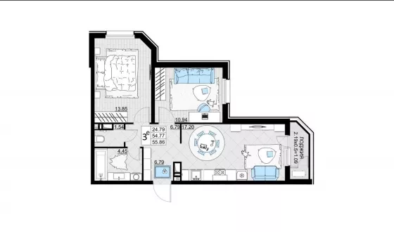 Продается 3-х комн. новостройка, 56 кв.м., 9/19 эт