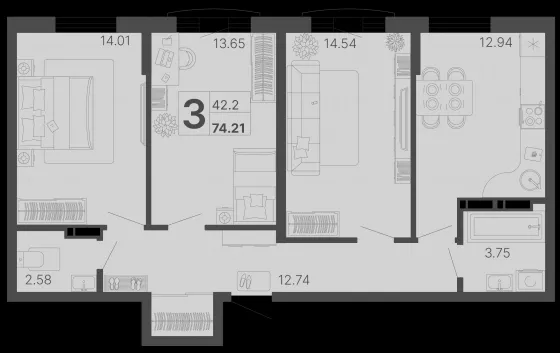 Продается 3-х комн. новостройка, 75 кв.м., 17/17 эт