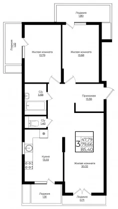 | Комнат в квартире | 3 |