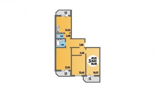 Продается 3-х комн. новостройка, 86 кв.м., 7/16 эт