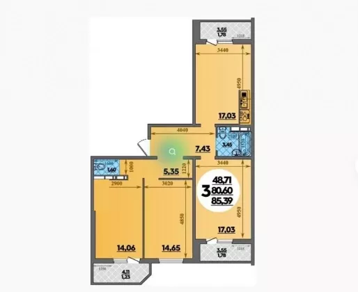 Продается 3-х комн. новостройка, 86 кв.м., 7/16 эт