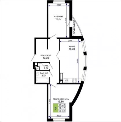 Продается 3-х комн. новостройка, 66 кв.м., 3/18 эт