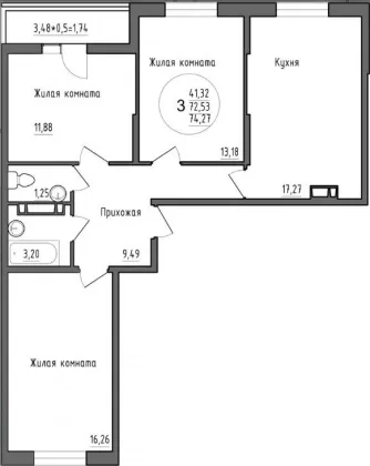 Продается 3-х комн. новостройка, 76 кв.м., 10/16 эт