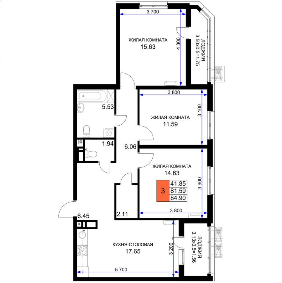 Продается 3-х комн. новостройка, 86 кв.м., 11/18 эт