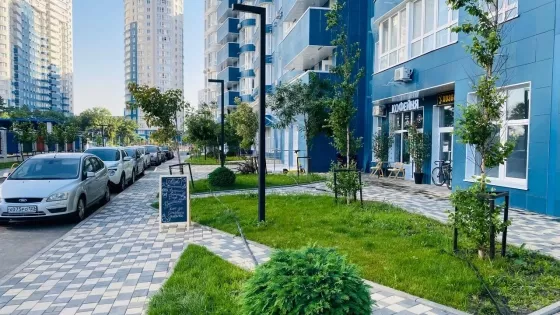 - ЖК расположен в Центральном окpугe г. Краснодар на берегу p.Kубaнь.