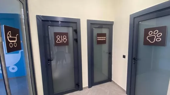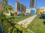 колясочная зона и помывочная для лап собачек .так же есть площадки для собак. продуманный ландшафтный красочные детские площадки и, много зелени и свежего воздуха.