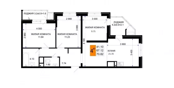 Продается 4-х комн. новостройка, 71 кв.м., 5/16 эт
