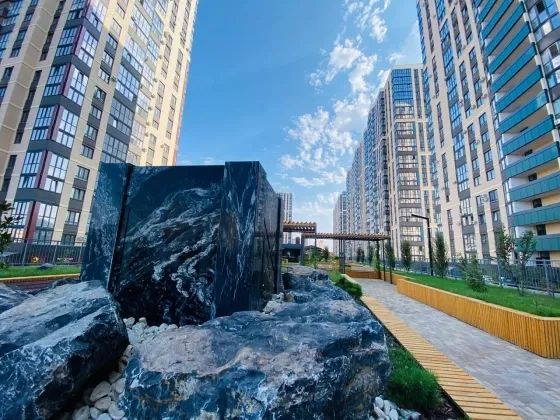Вдоль дома огромная алея 1,5 километра и фонтаны