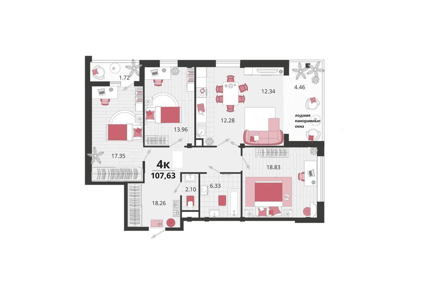 Продается 4-х комн. новостройка, 110 кв.м., 15/15 эт