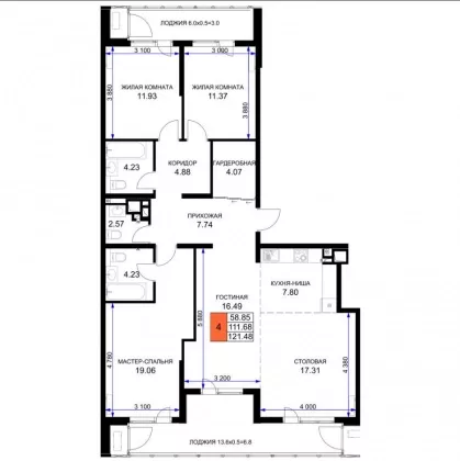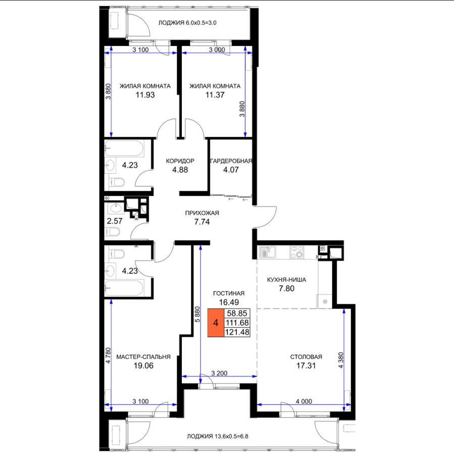 Продается 5+ новостройка, 132 кв.м., 11/16 эт