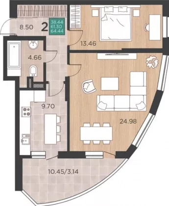 Продается 2-х комн. новостройка, 64 кв.м., 6/17 эт