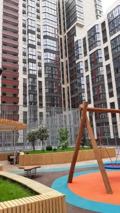 Придомовая территория ландшафтный дизайн,2-х уровневый стилобат,с детскими площадками и зонами отдых,удобный выезд и города.