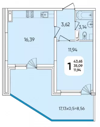 Квартира в новом доме, с большой кухней-гостинной 17 м2,огромная лоджия.,из которой можно легко сделать полноценную комнату.