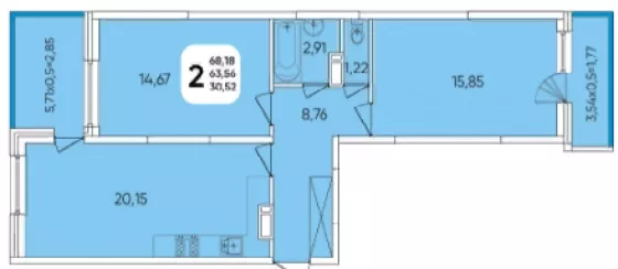 Квартира в новом доме,с большой кухней-гостинной 21м2 и двумя просторными спальными комнатами.