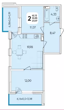 Продается 2-х комн. новостройка, 63 кв.м., 6/18 эт