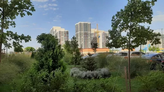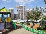 Придомовая территория ландшафтный дизайн,2-х уровневый стилобат,с детскими площадками и зонами отдых,удобный выезд и города.