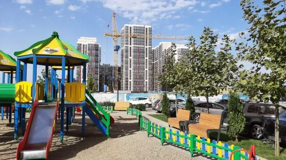 Рядом с домом 3 детских сада и школа,строится Торговый Центр ,во дворе крытая парковка.