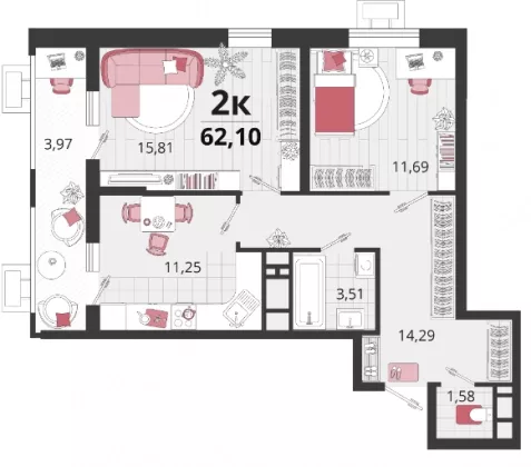 Квартира в предчистовой отделке, площадью 41м2