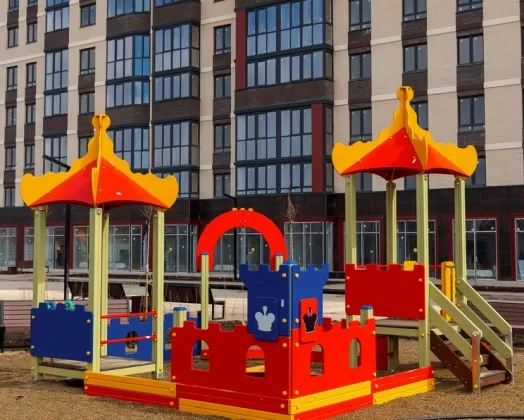 Рядом с домом 3 детских сада и школа,строится Торговый Центр ,во дворе крытая парковка.