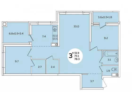 Продается 3-х комн. новостройка, 78 кв.м., 9/24 эт