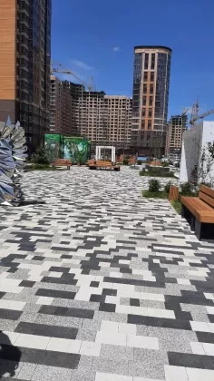 Во дворе строится школа,3 детских сада,есть действующая школа в соседнем дворе,подземные и многоуровневые парковки,,прогулочные аллеи с фонтанами,зоны отдыха и спортивные площадки.